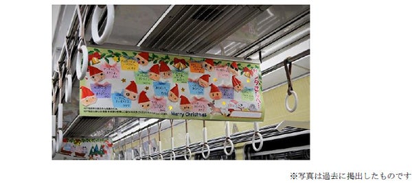 沿線の幼稚園・保育園(所)にご協力いただき、サンタクロースへの願い事やメッセージが書かれたポスターを車内に掲出します。