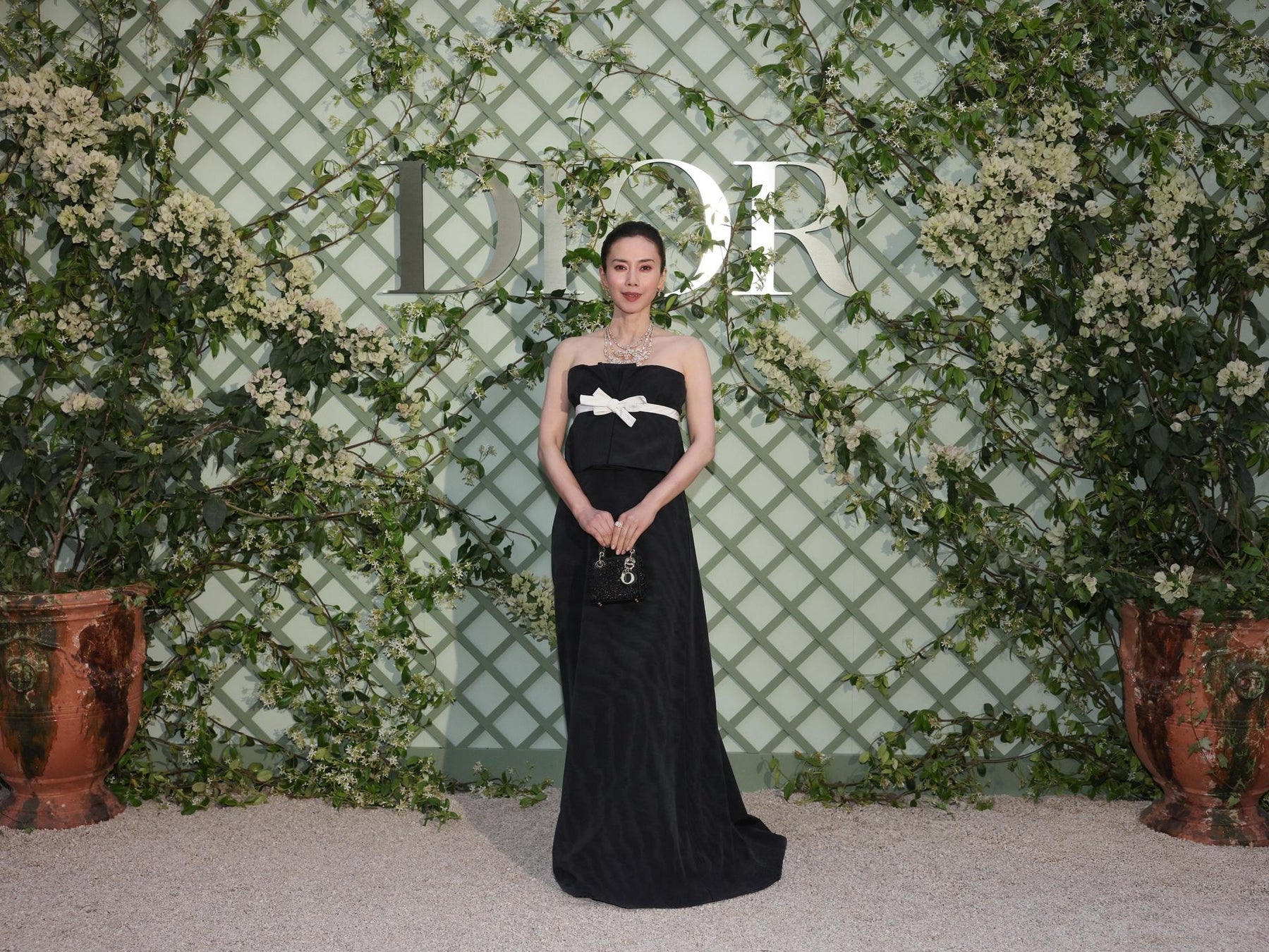 中谷美紀はホワイトのシルクリボンをあしらったオートクチュールのブラックのシルクドレスに、ブラックの「レディ ディオール」バッグを合わせた装いで登場しました。