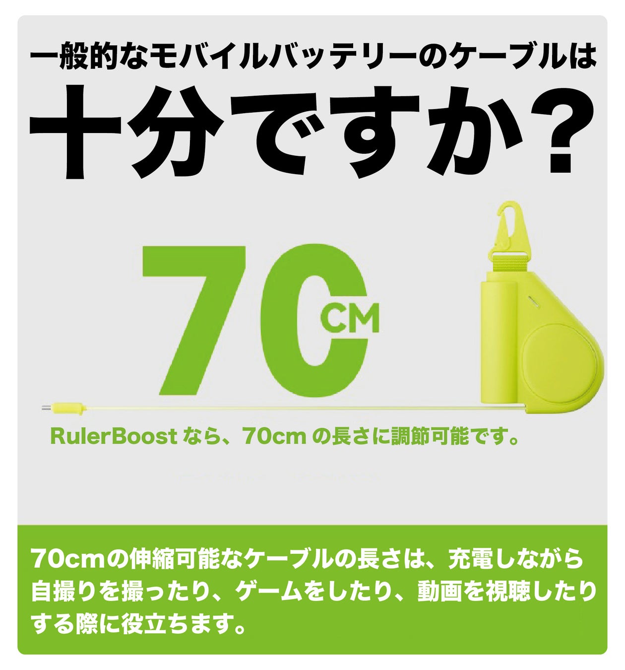 RulerBoostのケーブルは最長70cmまで伸ばすことが可能!