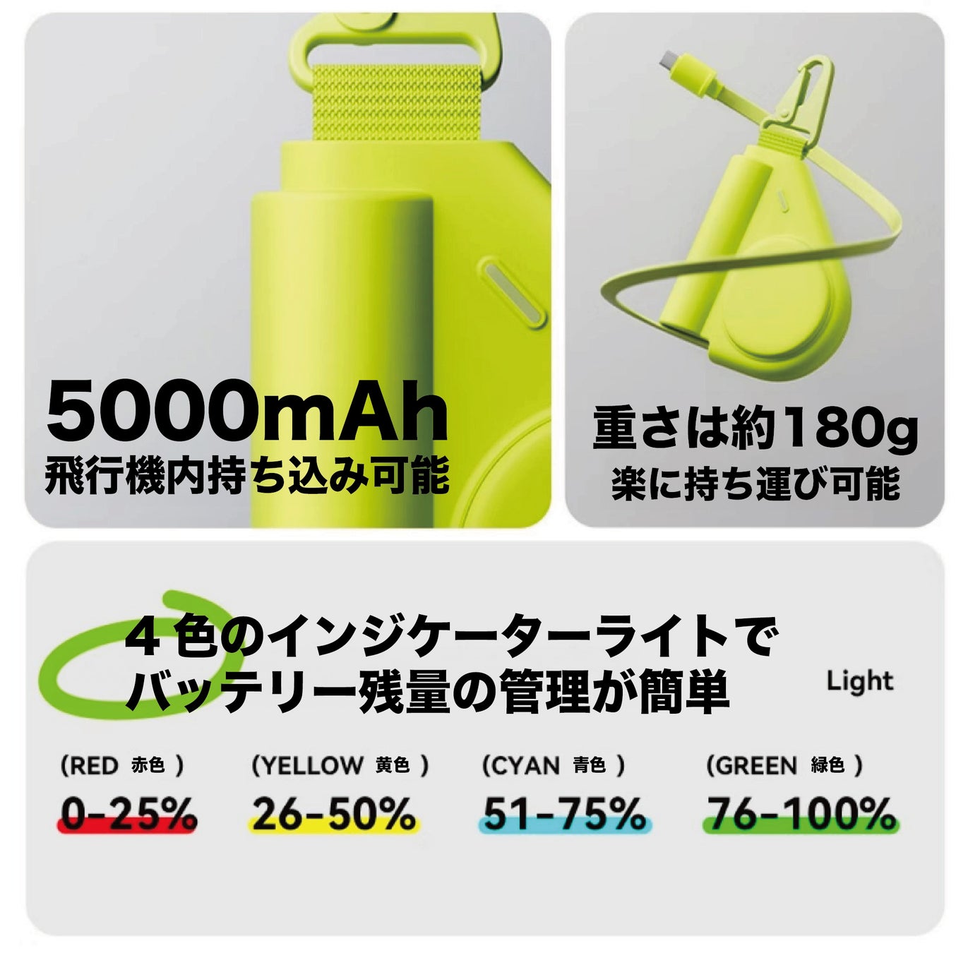 さらにこんなにもコンパクトなのに、長時間の使用に耐えることができる5000mAhの大容量バッテリーを備えています。