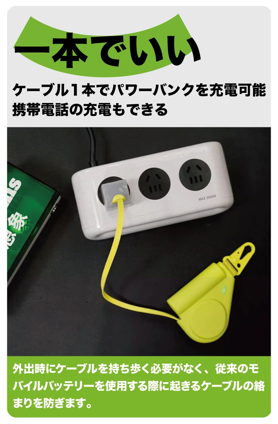 従来のモバイルバッテリーのように充電器とは別でケーブルを持ち運ぶ必要は、もうありません!