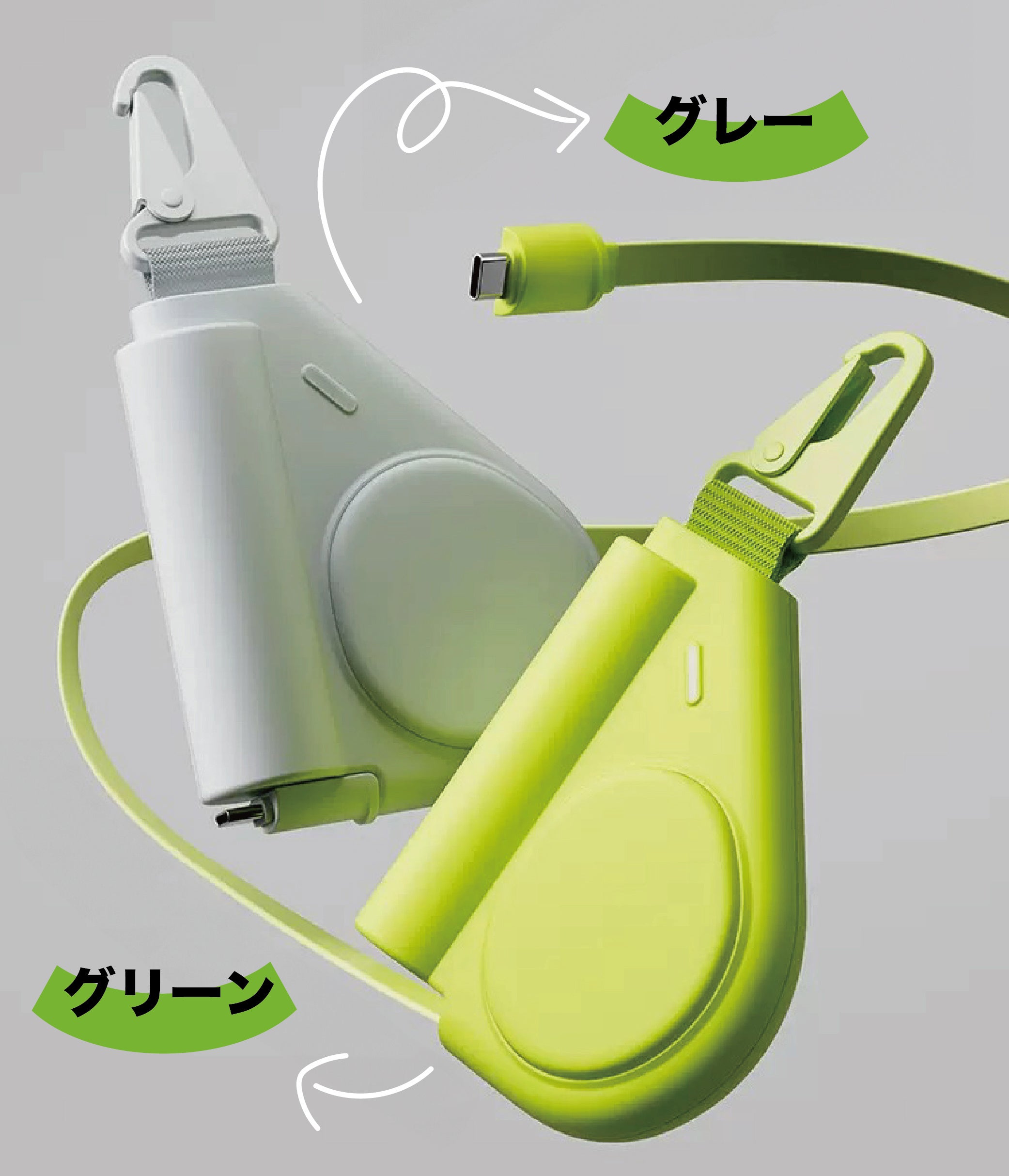 フック付きのウェアラブルデザインでバッグ等に取り付けることできるので、常に手が空き持ち運びの邪魔になることはありません!