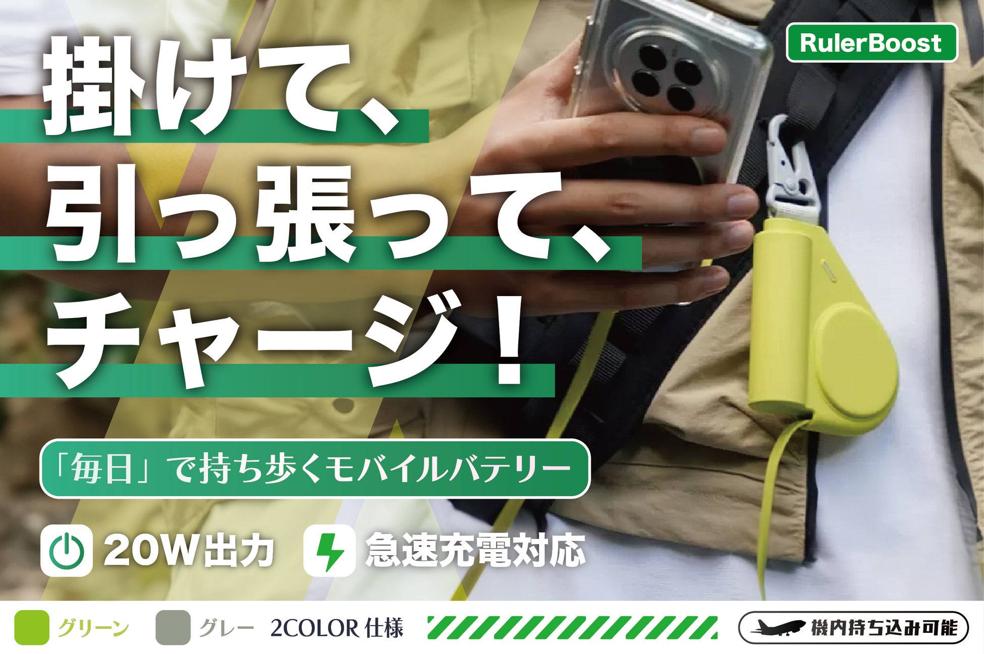 【最大40%オフ】【日本初上陸】使いたい時にサッと充電・ストレスフリー!バッグや体に取り付けられる斬新なデザインのモバイルバッテリー「RulerBoost」をクラウドファンディング開始