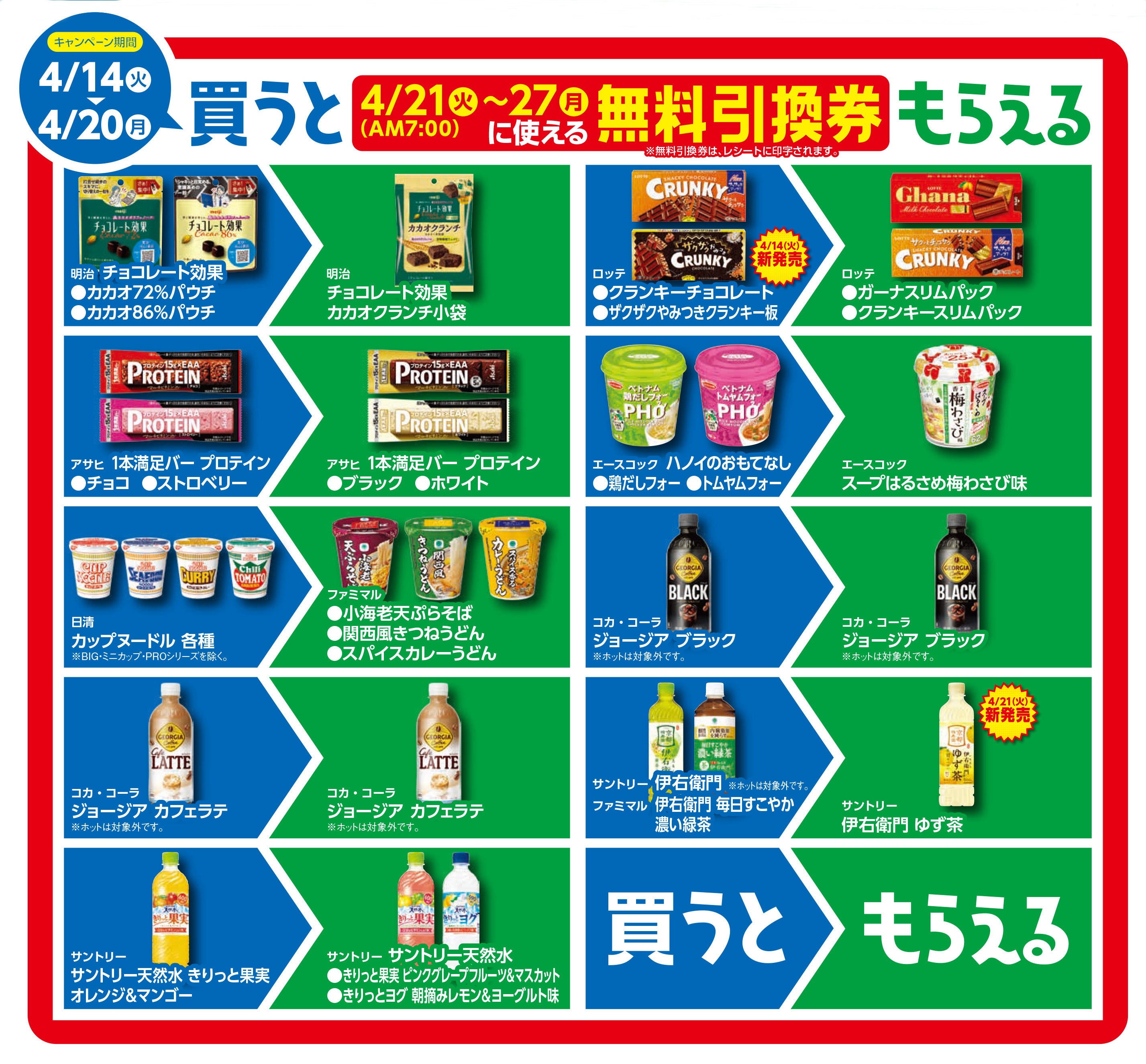 2026年4月7日(火)から4月27日(月)まで、期間中、対象商品を1個買うと対象の商品と引き換えられる無料引換券(レシートクーポン)を1枚プレゼントする、春の「1個買うと、1個もらえる」キャンペーンを実施いたします。