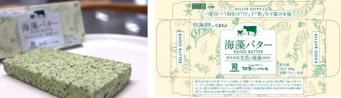 乳製品は熊本を代表する特産品の1つです。県民が日常的に購入するのはもちろん、観光客への土産としての需要もあります。そこに海藻を加えることで”海と山のコラボレーション”として、より「熊本の山も海も感じられるように」と思いを込めました。手に取った人がそれぞれの環境に想いを馳せ、山の豊かさは川を伝って海へと行きつき、山を守り愛することが海を守り愛することにつながります。熊本県自然の豊かさを守っていくために、この商品を通して一人一人が環境のためにできることを考えるきっかけになることを願い、海藻バターが誕生しました。
