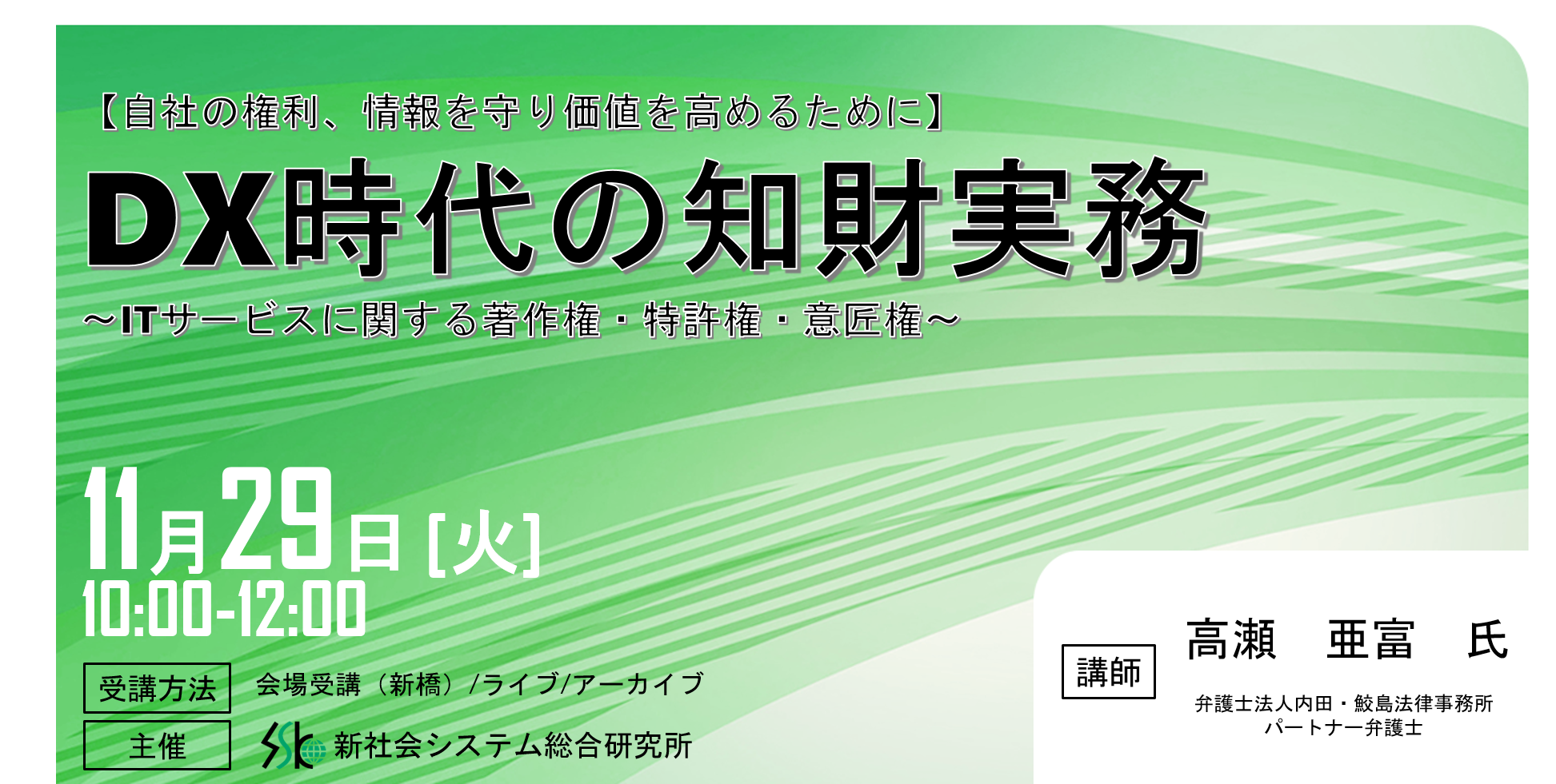 ビジネスセミナーを企画開催する新社会システム総合研究所(SSK)は、下記セミナーを開催します。
