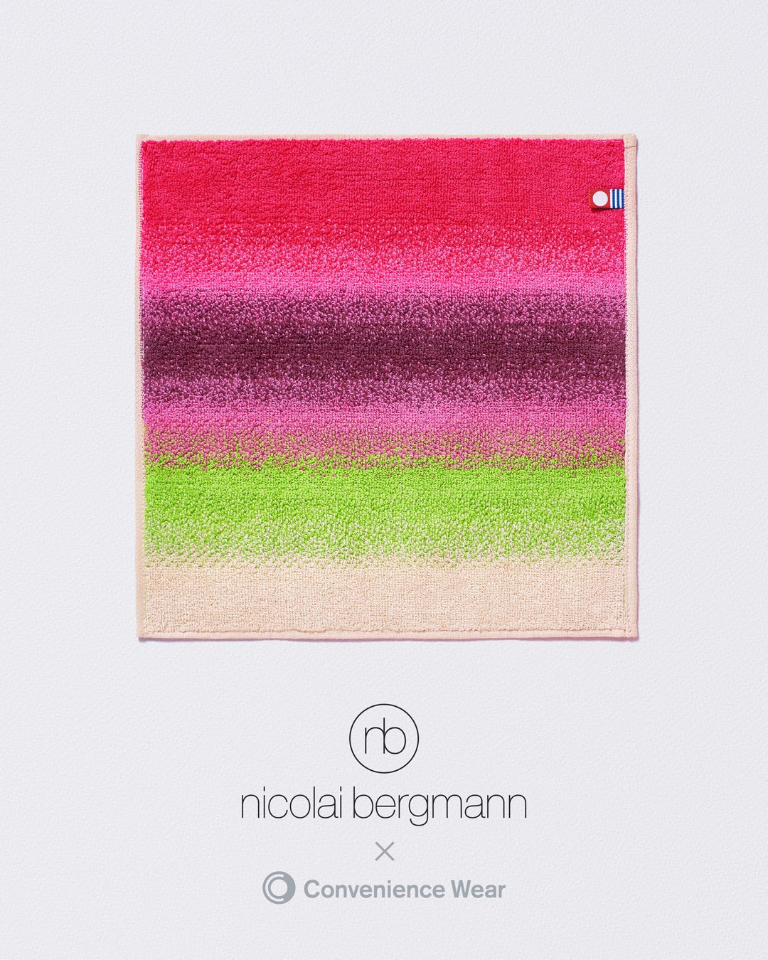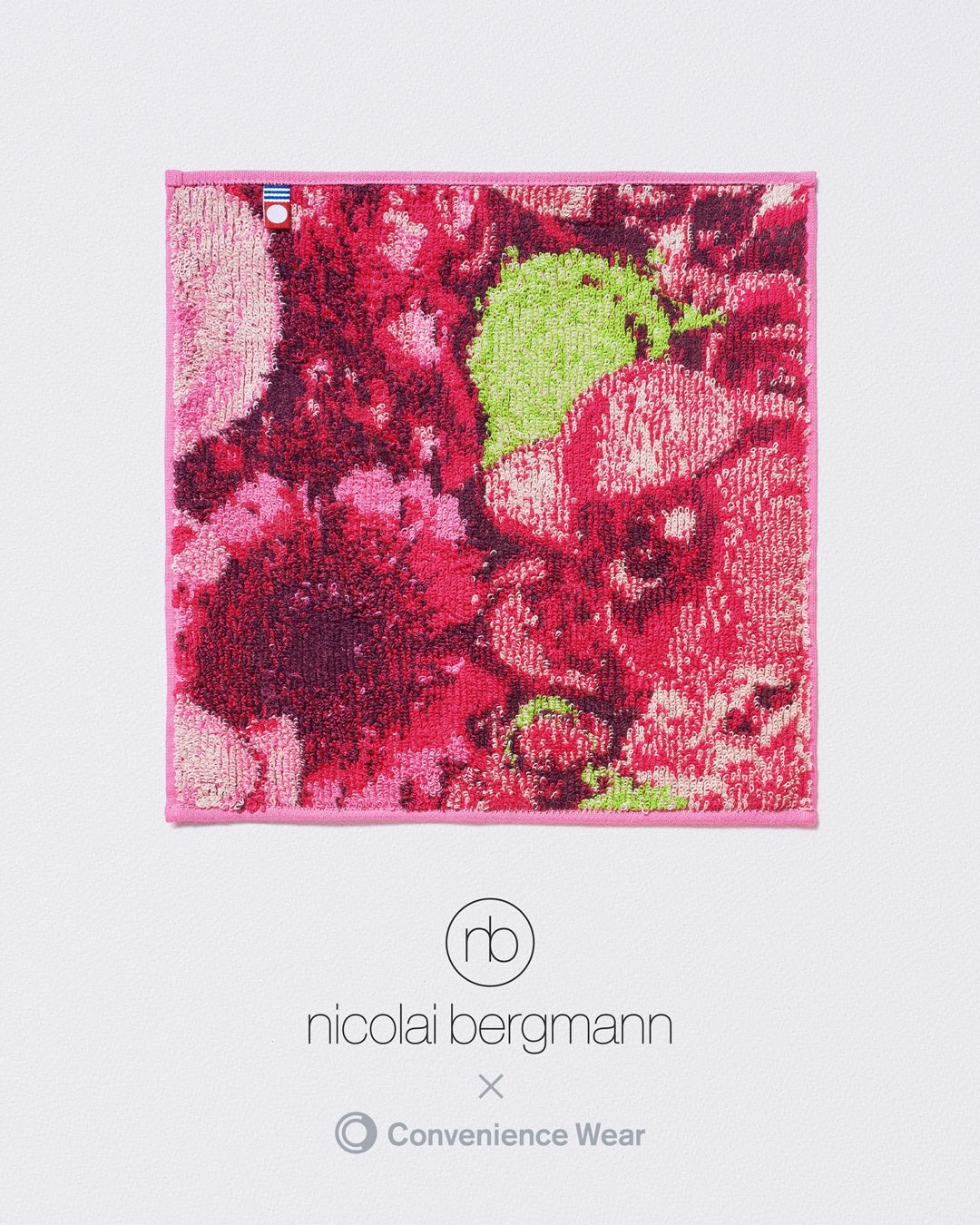 第1弾として、春のギフトシーズンや母の日の贈り物としてもぴったりなタオルハンカチが登場。花びらの重なりや色彩のグラデーションといったニコライ バーグマンのフラワーデザインの特長を、今治タオルの織りで表現しました。ラインアップは、フラワーボックスの印象をそのまま落とし込んだ花柄と、花の色彩をもとに、コンビニエンスウェアの今治タオルハンカチにおいて代名詞ともいえるグラデーションを表現した2種類です。どちらもバンブーレーヨン素材を使用し、柔らかな肌触りと発色のよさが特長です。ご自身へのご褒美や大切な方への贈り物、母の日のプレゼントなど、何気ない毎日を彩る一枚としてもお楽しみいただけます。