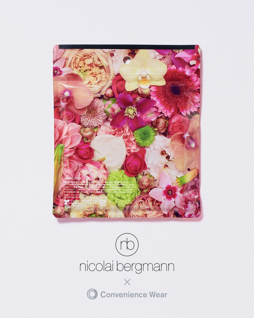【内容】ニコライ・バーグマン氏が今回のコラボレーションのためにデザインしたフラワーボックスをベースに、花柄とグラデーションの2種類を展開します。バンブーレーヨン素材を使用し、光沢感としっとりとした滑らかな肌触りが特長です。