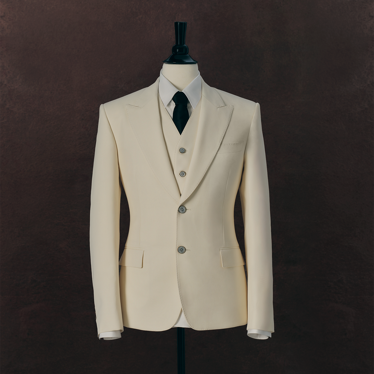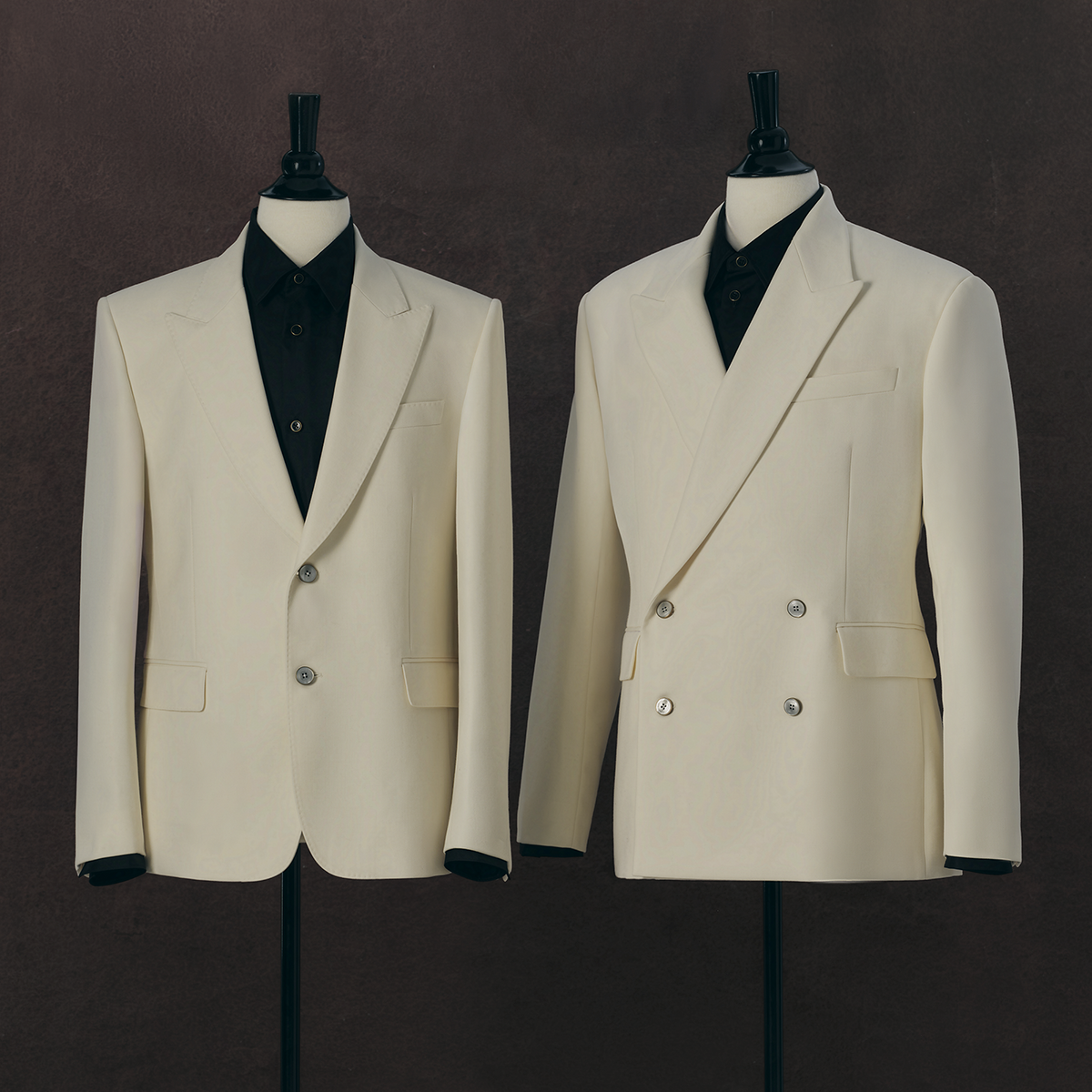 また、パフォーマンスを行った際に着用したホワイトのジャケットは、柔らかなウールを用い、職人技による仕立てで制作しており、マザー·オブ·パール ボタンにカスタムのシグネチャーラベルのディテールを備え、裏地にはシルクを全面に使用しています。