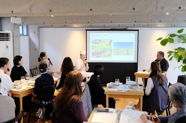 「アイゴ」自体を初めて口にした方からも一品目から「美味しい」という声が上がるなか、堀内さんから調理法や工夫した点が語られ、さらに「アイゴ」への理解が深まるという時間。「豊後水道のアイゴ一夜干し」を食べたことがあるという参加者も、日本料理として上品に仕上げられた一皿一皿を満足気に味わっていました。食事後はお二人を交えたクロストーク。いま海が抱える問題を、それぞれの立場から一般消費者に届けるために活動を続ける熱量と経験から語られる想いを聞き、参加者からは「自分がいる小さな輪からでも少しずつやっていかないといけないと思った」「初めての参加だったが、良い経験をさせてもらった」といった声が聞かれました。