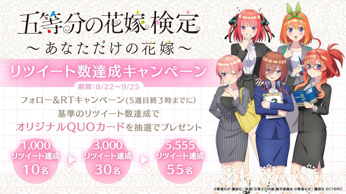「五等分の花嫁検定~あなただけの花嫁~」オリジナルデザインQUOカードプレゼントキャンペーン開始!
