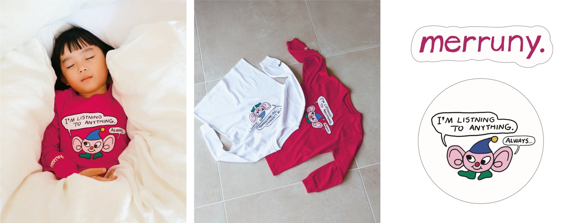 身体の成長はもちろん、心の成長も著しく、だんだんと“自分の好み”が芽生えてくる年頃の子供たちへ向けて、あっという間にサイズアウトしてしまう時期だからこそ、子供にしかできない貴重な可愛いサイズ・姿で、おしゃれを思い切り楽しんでほしい。そんな想いを込めてmerruny.は誕生しました。
