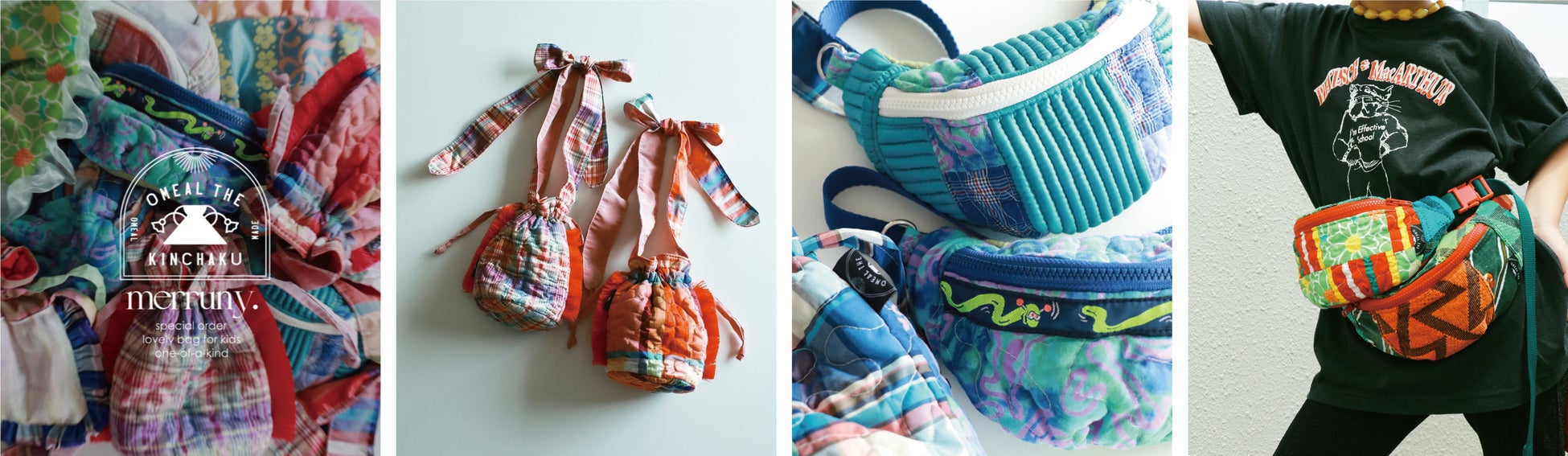 2016年、旅先で見つけたお気に入りの生地を小さな巾着にしたことから始まったomeal the kinchaku (オミール ザ キンチャク) ビンテージのファブリックや服、ラグなどをばらし組み合わせて作る巾着を中心としたバッグをはじめ、アーティストによるオリジナル生地を使用したコラボアイテムなども展開しています。