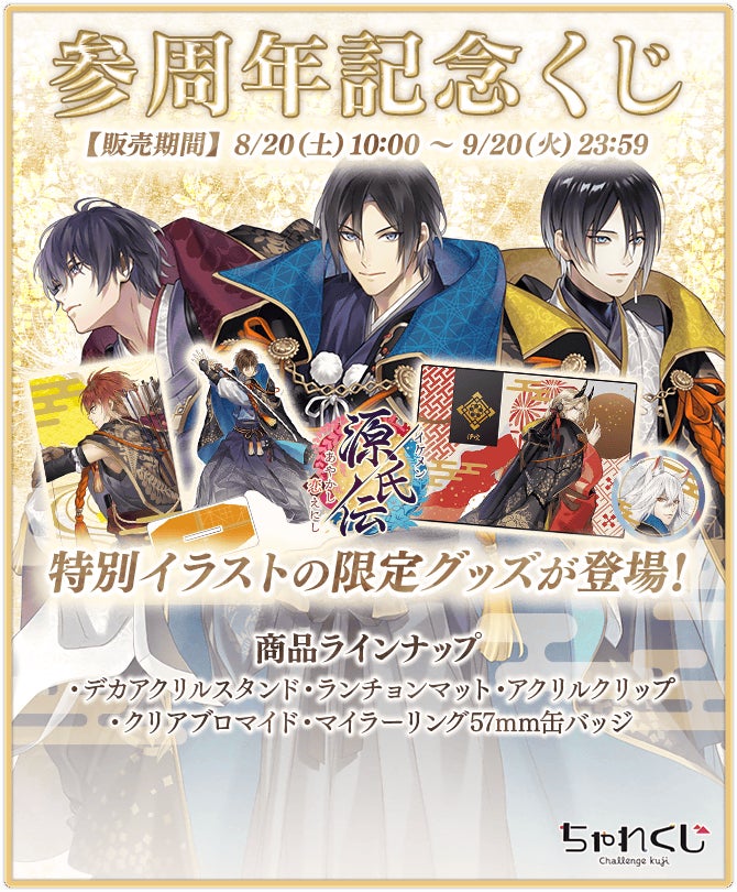祝・参周年『イケメン源氏伝 あやかし恋えにし』参周年を記念した「イケメン源氏伝生ラジオ」配信決定!~「参周年記念くじ」も販売中!~