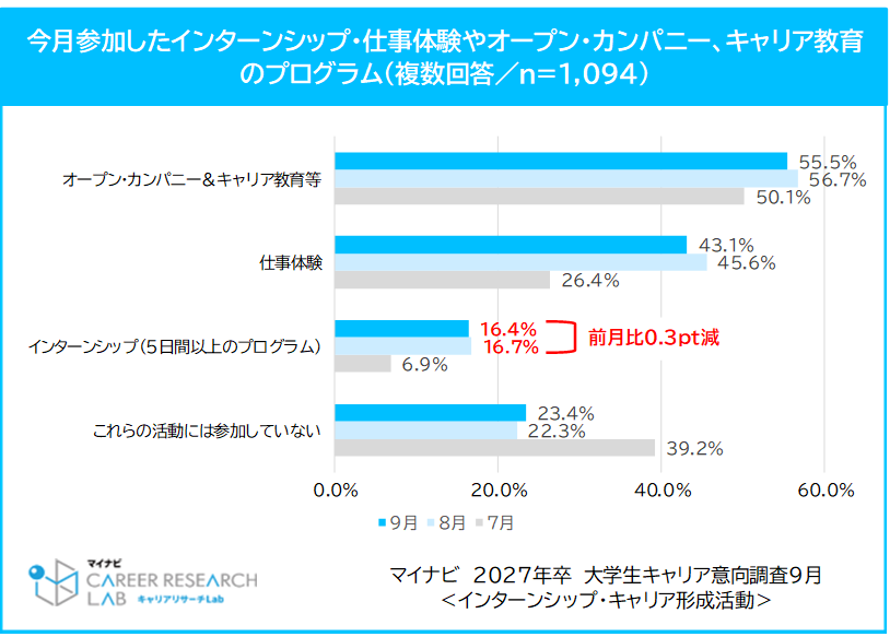 「マイナビ 2027年卒 大学生キャリア意向調査9月<インターンシップ・キャリア形成活動>」