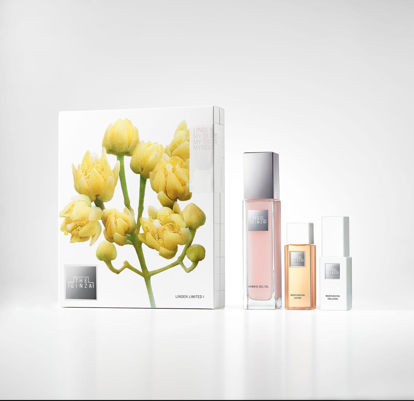銀座の街に咲く花の記憶、やすらぐような菩提樹(リンデン)の香りに包まれながら、心地よいお手入れの時間へと誘います。「ザ・ギンザ モイスチャーライジングローション」で角層のすみずみまでうるおいをとどけ、「ザ・ギンザ ハイブリッドジェルオイル」で生命美あふれるつや肌へ導き、「ザ・ギンザ モイスチャーライジングエマルジョン」がハリ・弾力で満たします。
