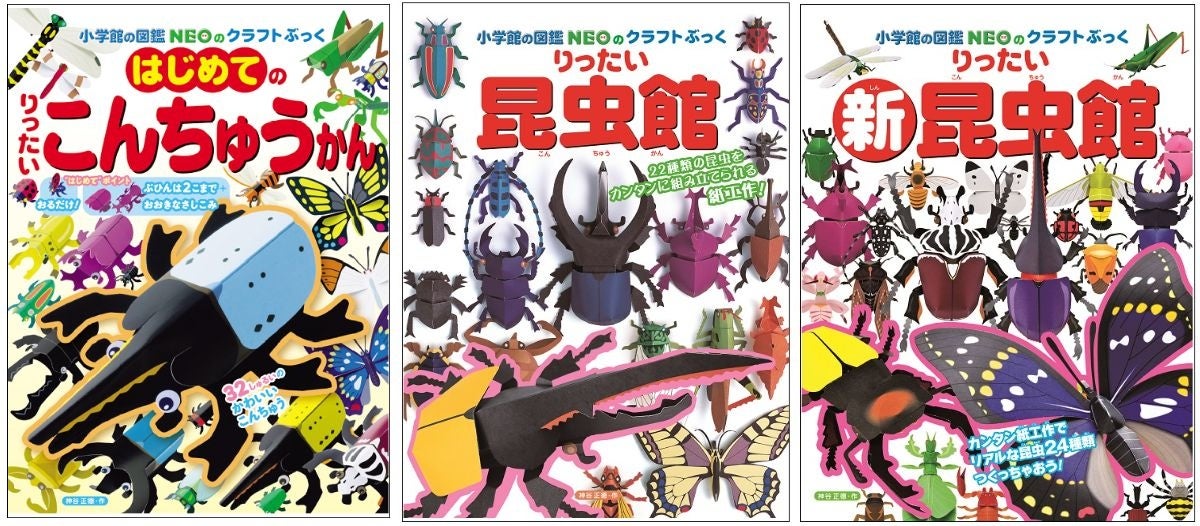 小学館の図鑑NEO たんけん昆虫フェス賞の賞品は、「小学館の図鑑NEOのクラフトぶっくシリーズ」の昆虫関連3冊セットです。かんたんなのに精緻で迫力満点な昆虫のペーパークラフトを楽しめます。