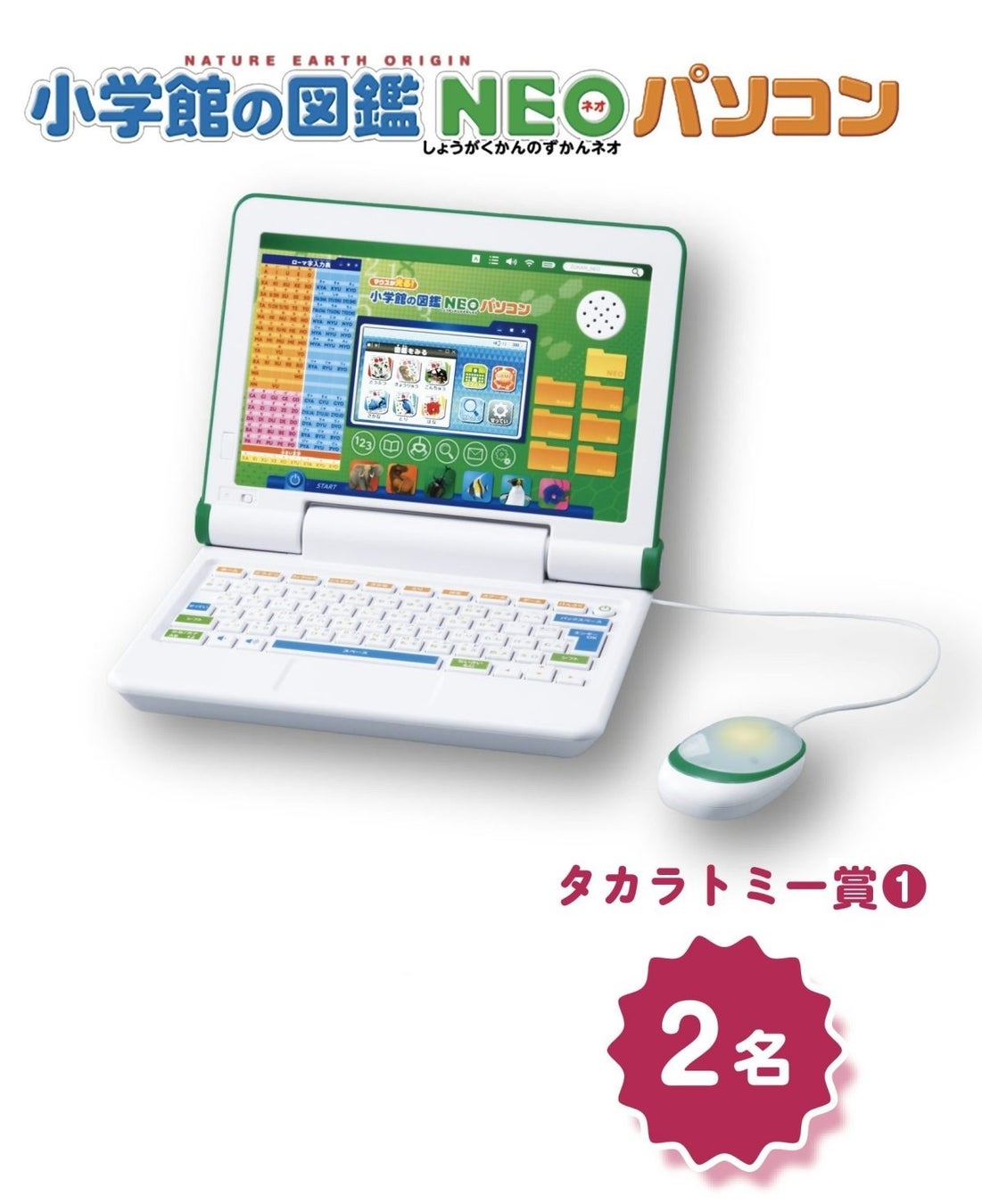 タカラトミー賞①は「小学館の図鑑NEO パソコン」を2名に。約650種類のデータが掲載され、これ1台で調べ物に対応できるほか、ゲームなど豊富なコンテンツがたっぷり!