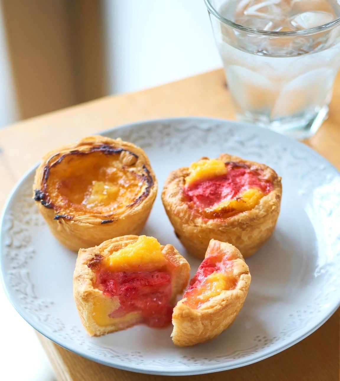 福岡市の西新エリアにある「The Explorers 」は、世界中のその土地で親しまれている郷土菓子、伝統菓子を現地のレシピをもとに作っています。伝統的なポルトガル菓子であり、世界中で愛されているエッグタルト。パリッとした食感のパイ生地の中に風味豊かなカスタードクリームとフルーツのおいしさがギュッと詰まっています。