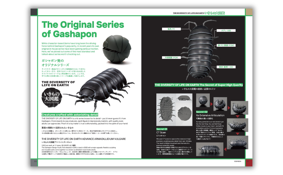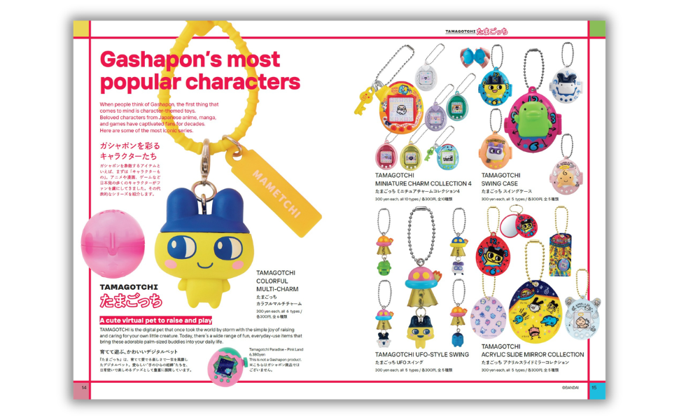 This issue’s bonus foldout map features GASHAPON BANDAI OFFICIAL SHOP locations in Tokyo and Osaka, plus stores around the world. Easy to carry as you explore Japan—and a handy guide for discovering GASHAPON spots overseas too.