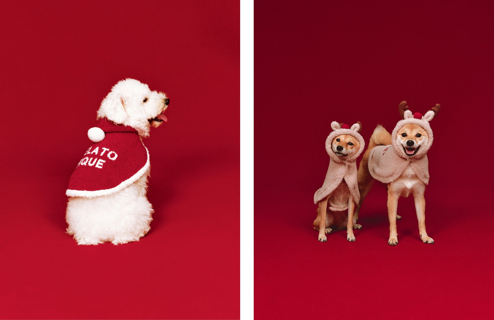 サンタクロースをイメージしたフード付きのウェアと、ツノと真っ赤な鼻付きでトナカイになれるウェア。