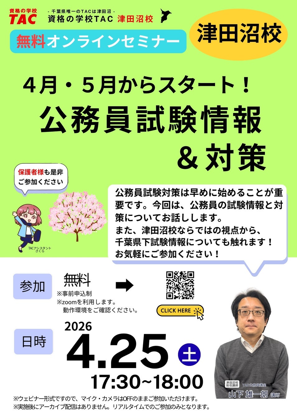 TAC津田沼校独自の視点から千葉県下の試験情報にも触れるので、お気軽にご参加ください!