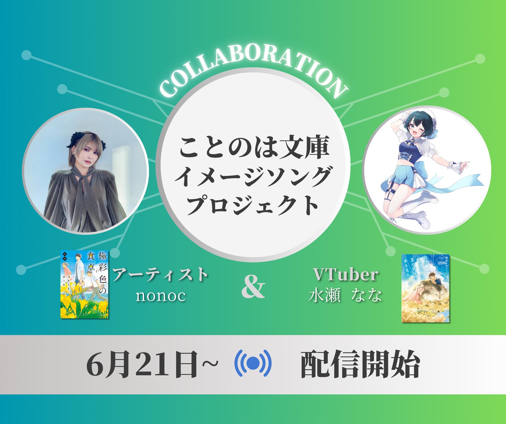 ◆活字と旋律が融合する◆ 6月新刊作品のイメージソングを、人気アーティストnonoc、水瀬なな(VTuber)が担当!2025年6月から2026年5月に刊行される全作品にイメージソングが付きます!