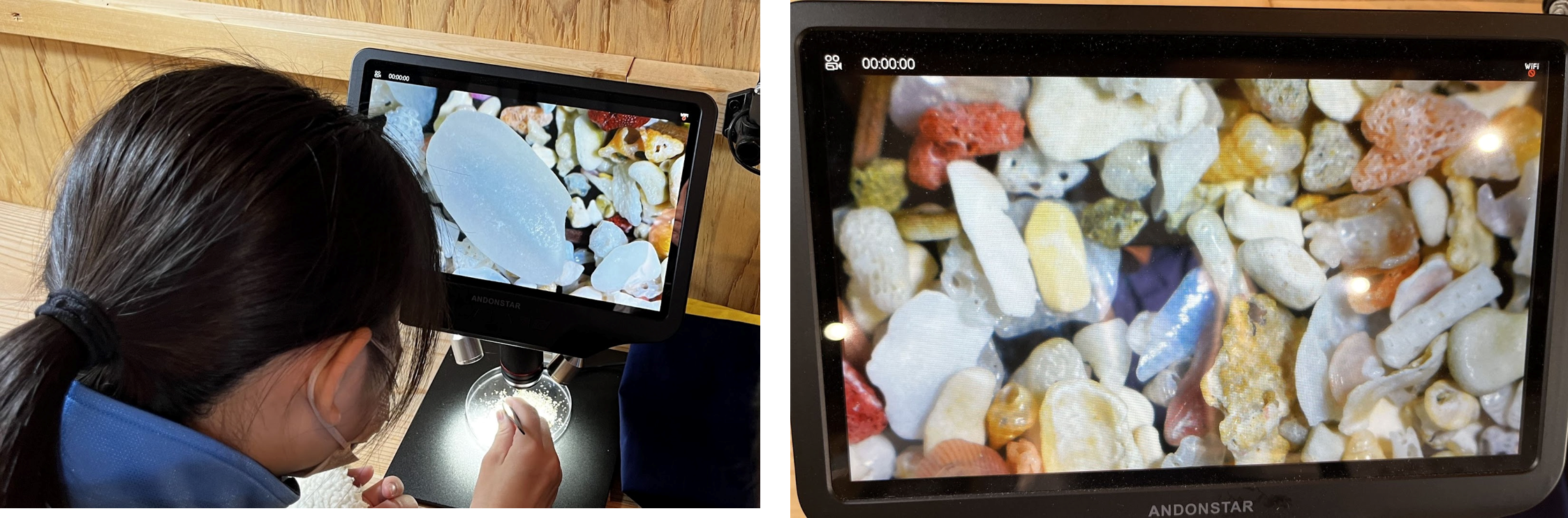 小波海水浴の貴重な環境について講義/デジタル顕微鏡を用いた微小貝、貝類の観察
