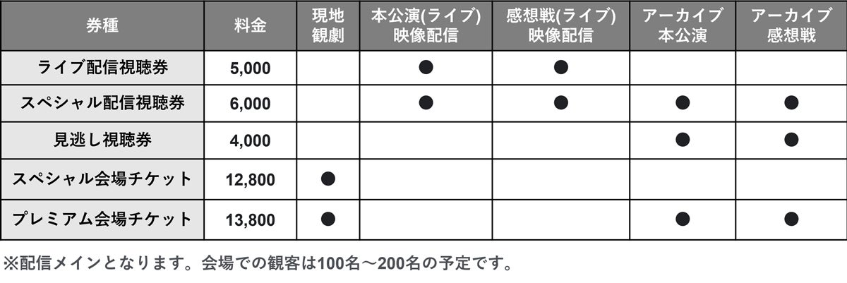 ※スペシャル&プレミアム合わせて各公演144席の数量限定のチケットとなります。
