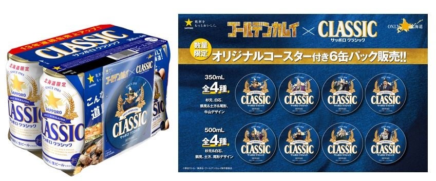 サッポロホールディングス(株)のグループ企業であるサッポロビール(株)は、「サッポロ クラシック」とTVアニメ『ゴールデンカムイ』のタイアップキャンペーンとして、「サッポロ クラシック6缶ゴールデンカムイオリジナル景品付き」商品を4月18日に北海道エリアで数量限定発売します。