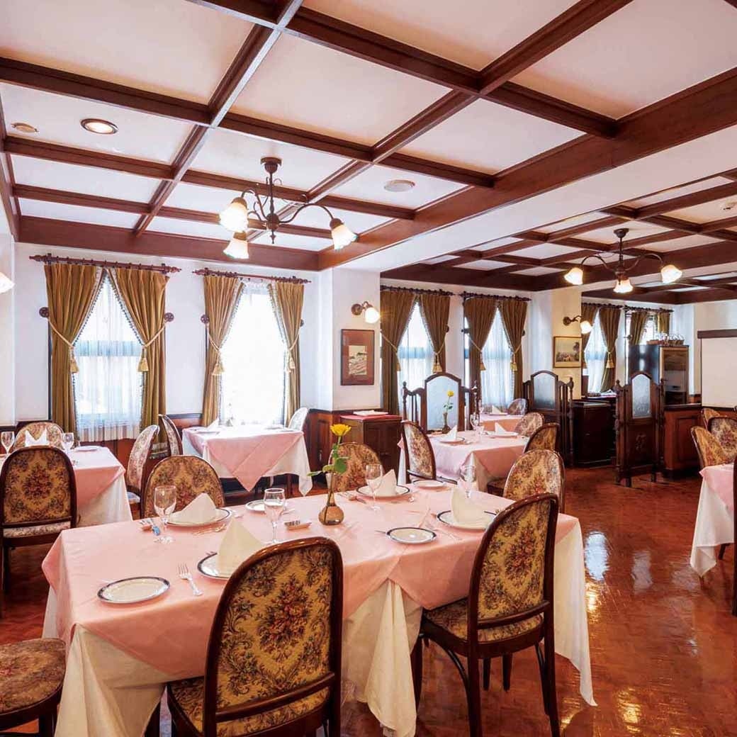 ① 開業当時、ホテルのメインダイニングであった「フェニックスルーム」にて、