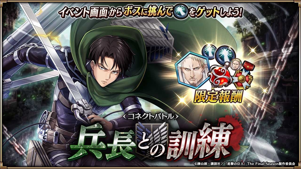 ・リヴァイとの訓練に挑む初心者向けコネクトバトルを開催!「ライナー・ブラウン」の育成素材を集めよう