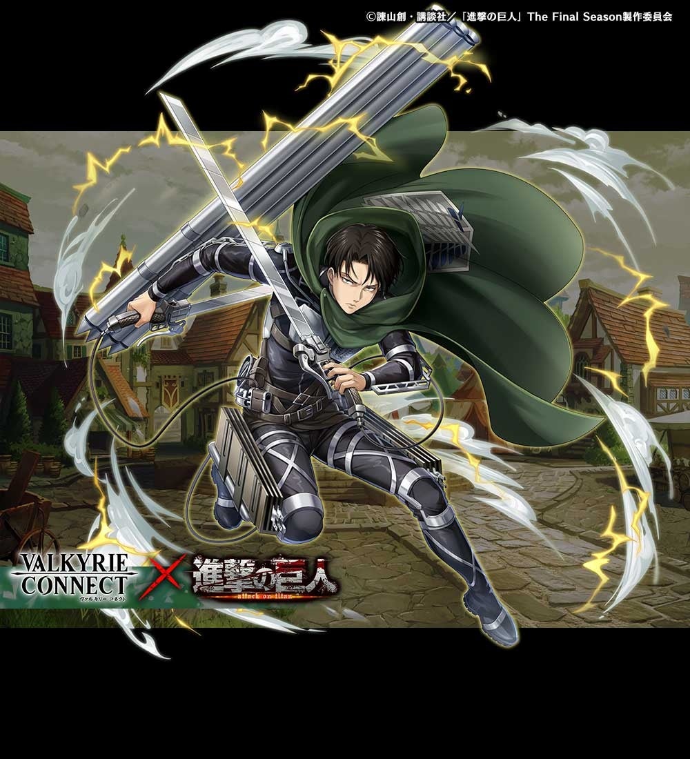 至高のハイファンタジーRPG『ヴァルキリーコネクト』が TVアニメ『進撃の巨人』とコラボ開催!鎧の巨人が強襲…リヴァイ兵長による初心者向け訓練も!