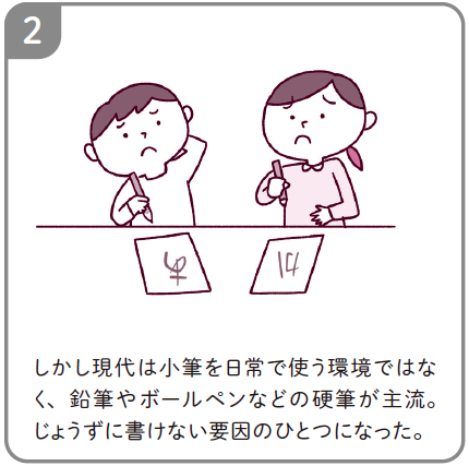 しかし、現代で小筆を日常づかいするわけにもいきません。鉛筆やボールペンといった、払いを書くことが難しい、先のかたい筆記具を使用するようになっています。