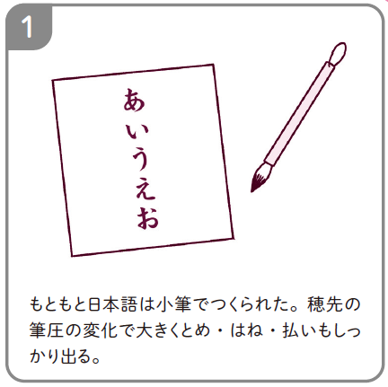 私たちが普段書いている日本語は、小筆でつくられ、小筆で書くことを前提としたものです。穂先がやわらかいので筆圧の変化が大きく、「とめ・はね・払い」などもしっかりと出ます。