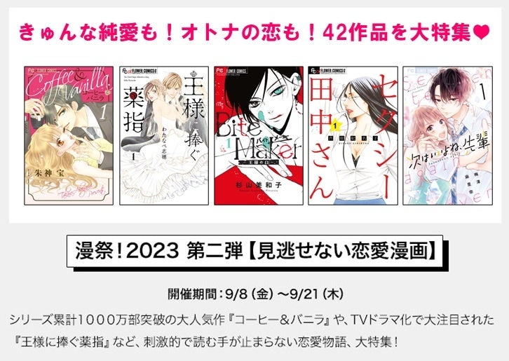 次週以降も、毎週金曜に新しい特集がスタート!9月8日からは第二弾【見逃せない恋愛漫画】特集がスタートします。以降も、話題作ラッシュでお届けします。