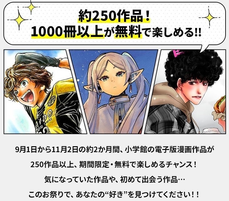 本日[2023年9月1日]より、小学館の電子コミックが250作品・合計1000冊以上も無料で楽しめる期間限定キャンペーン「漫祭!2023」がスタート!電子コミック各ストアにて開催中です。