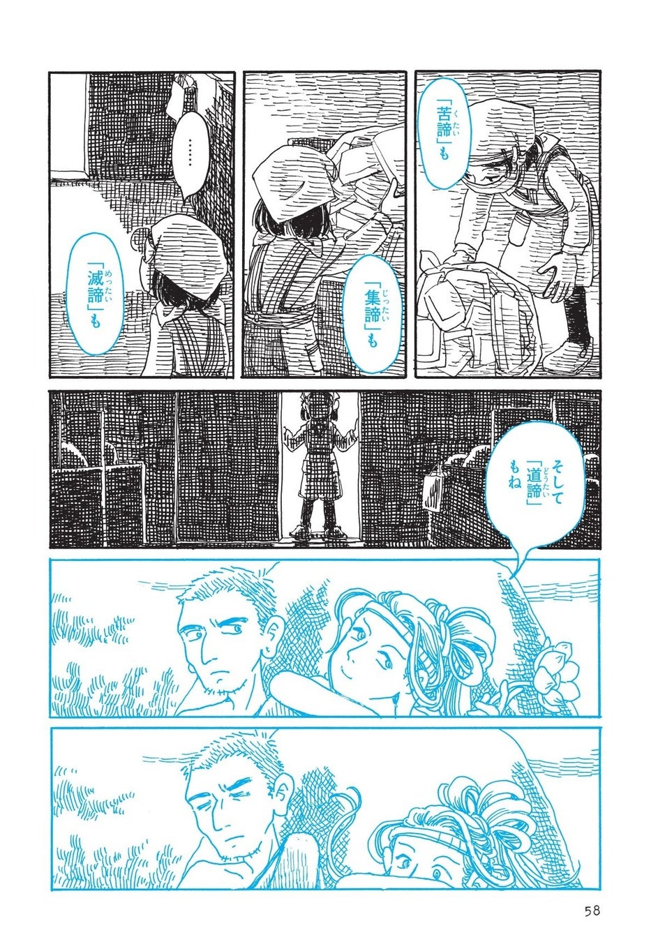 こうの史代さんはこれまで、『この世界の片隅に』『ぼおるぺん古事記』『ギガタウン 漫符図譜』など個性の光る名作をたくさん生み出してきました。『空色心経』でもその、唯一無二の世界観にぜひ触れてみてください。また、このたび本作の「試し読み」ページも公開しました。2色マンガの魅力をぜひ実際にご確認ください。