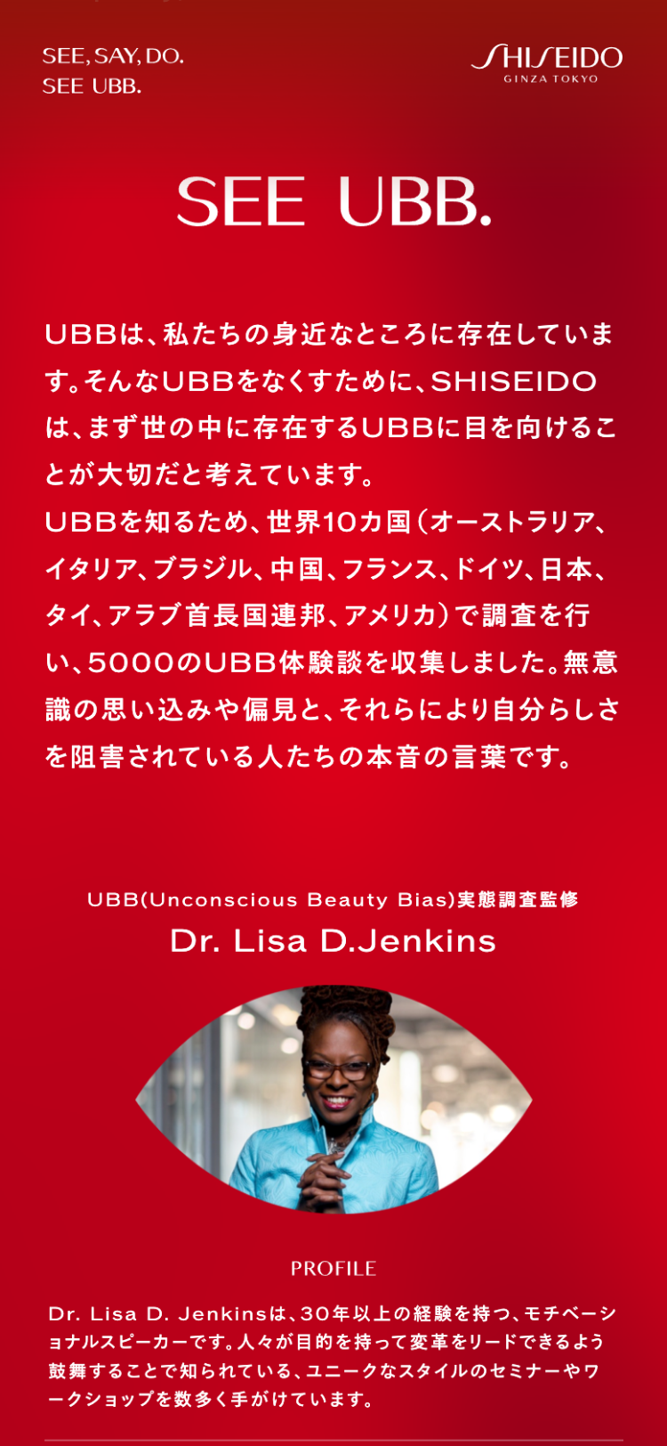 その第一弾として、企業/団体を対象としたUBBを考える「SEE,SAY,DO.プログラム」を構築し、提供を開始いたしました。今後より多くの企業/団体に導入されることで世の中に存在するUBBが認識され、自分らしい美しさの実現が妨げられることのない世界の実現に向かっていくことを期待しています。