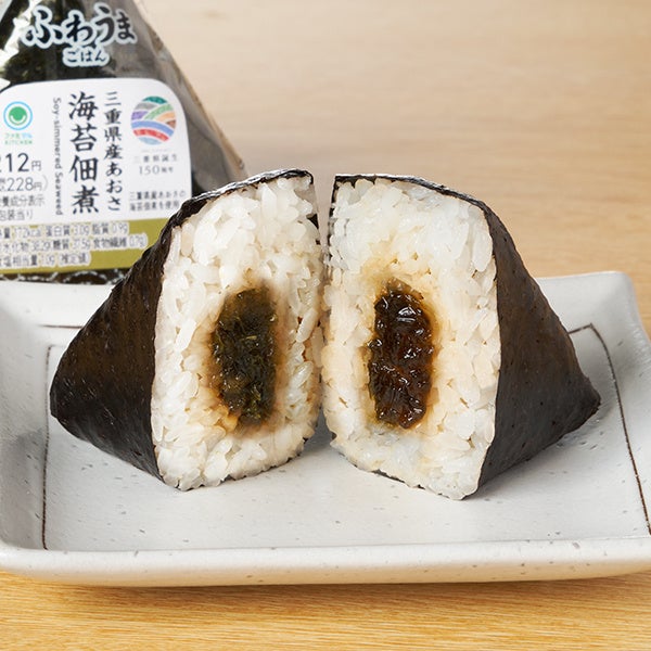 【内容】 「三重県産あおさ」を使用しました。醤油や三温糖などでシンプルに味付けし、あおさの磯の香りが楽しめる海苔佃煮を中具にした手巻おむすびです。※数量限定