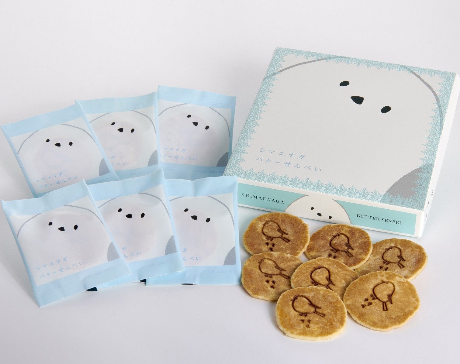 日本では北海道にしか生息しない野鳥「シマエナガ」のデザインのタイムズスクエアです。北海道産バターをたっぷり使い、一枚一枚手焼きで焼き上げた風味豊かなおせんべいです。