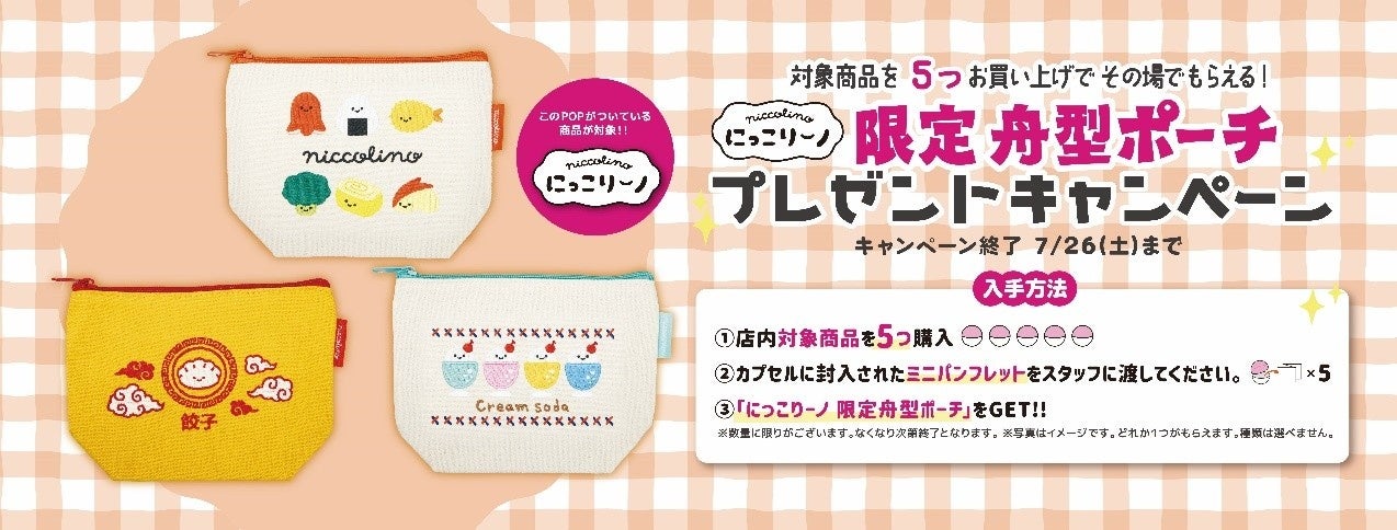 対象商品5個お買い上げで「限定舟形ポーチ」をプレゼント