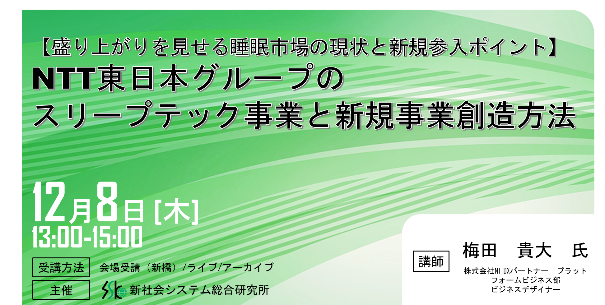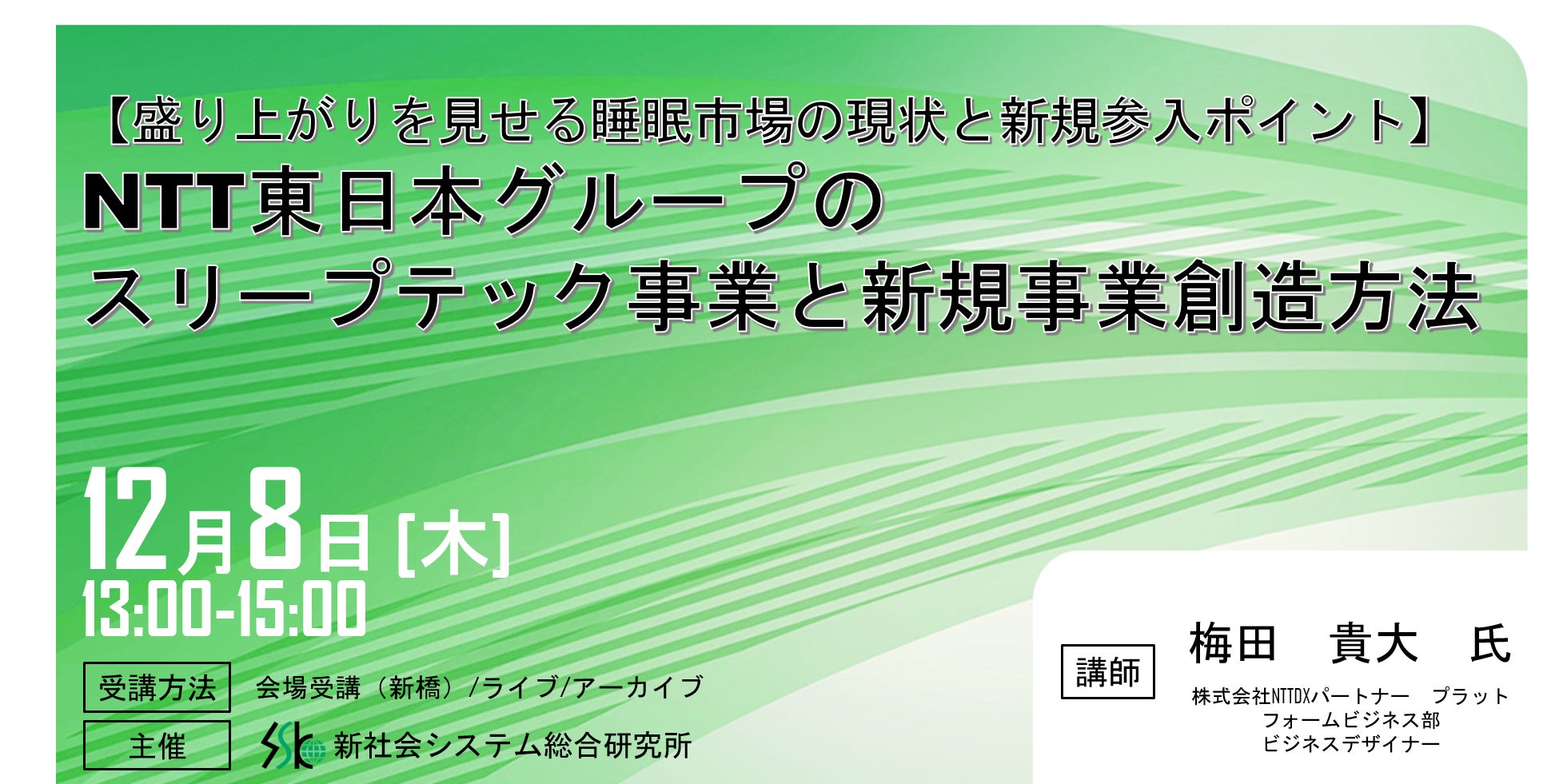 「NTT東日本グループのスリープテック事業と新規事業創造方法」と題して株式会社NTTDXパートナー プラットフォームビジネス部 梅田 貴大氏のセミナーを2022年12月8日(木)に開催!!