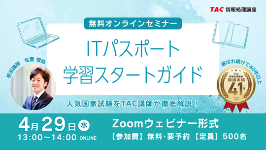 【TAC情報処理】『ITパスポート試験学習スタートガイド』無料オンラインセミナー4/29(水)開催!