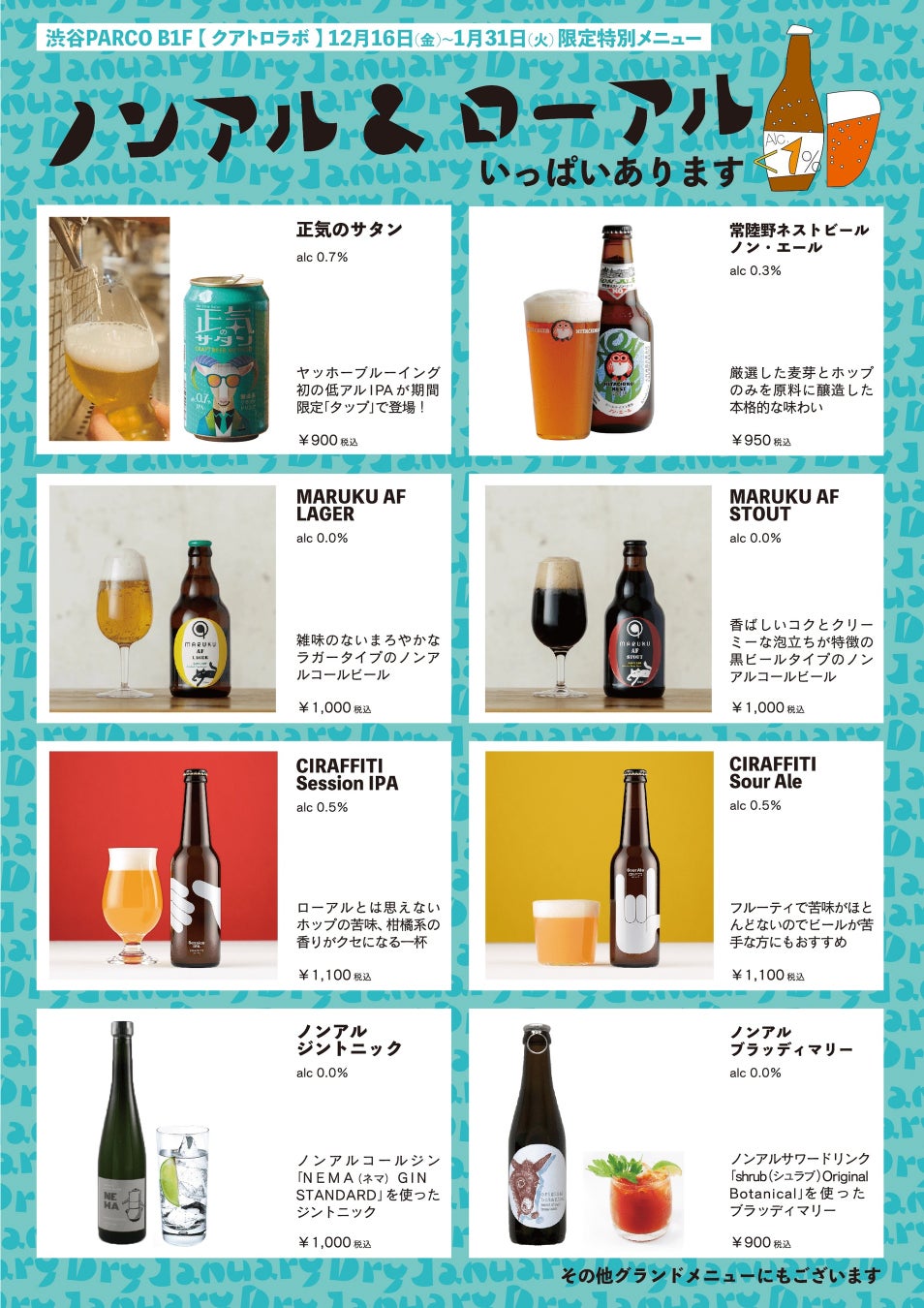 - 渋谷PARCO「クアトロラボ」12月16日(金)ノンアル/ローアル特別メニュー提供開始