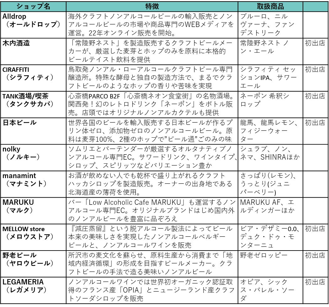 そのお隣に、一足早くドライ・ジャニュアリーのボトルショップが出張出店!選りすぐりのノンアル/ローアルドリンクを販売します。