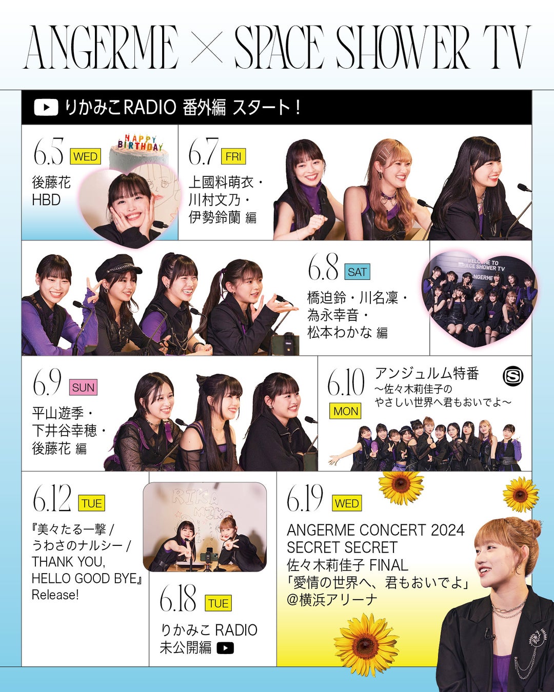アンジュルムが6月12日にリリースするトリプルA面シングル『美々たる一撃/うわさのナルシー/THANK YOU, HELLO GOOD BYE』、そして翌週19日開催の横浜アリーナ公演をもってグループから羽ばたく佐々木莉佳子の卒業を記念した特別番組がスペースシャワーTVでオンエア!