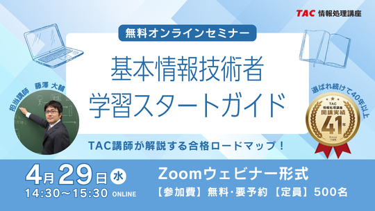 【TAC情報処理】基本情報技術者試験『学習スタートガイド』無料オンラインセミナー4/29(水)開催!