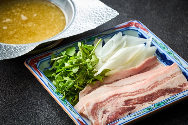 福島県の安達太良山麓で育てられたブランド豚“あだたら豚”をしゃぶしゃぶでご用意いたします。しっとりとした脂身は口の中でとろけるような食感となり、豚肉本来の旨みをしっかり堪能いただけます。かつおと昆布の出汁に大根おろしを入れたみぞれ鍋にし、素材の味を引き立てます。 |