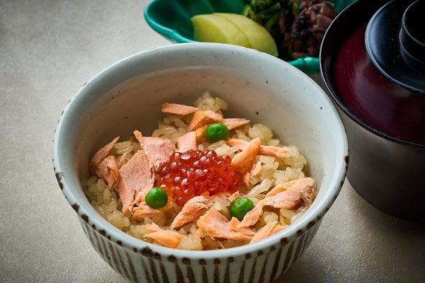 阿武隈川メイプルサーモン バター醤油炊き込みご飯 味噌椀 漬物 |